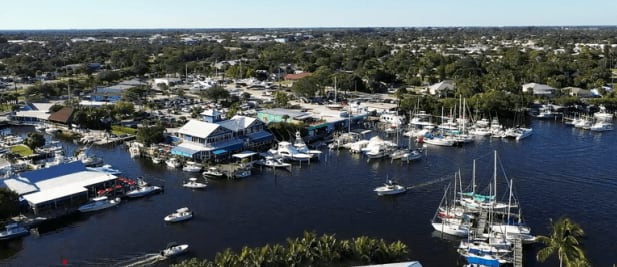A picturesque bay in Port Salerno that includes restaurants, bait shops, marinas, and a bustling art center.